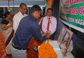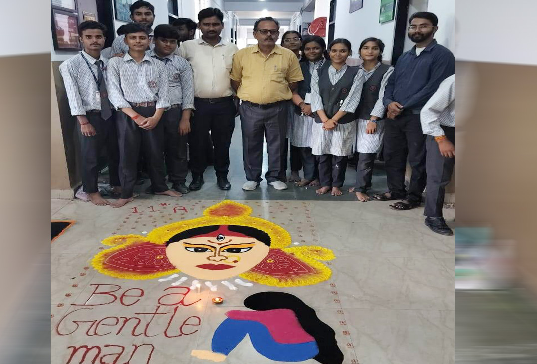 Hon’ble Manager Ma’am garlanded on the portrait of Maa Saraswati & Babu K.N. Singh Ji |