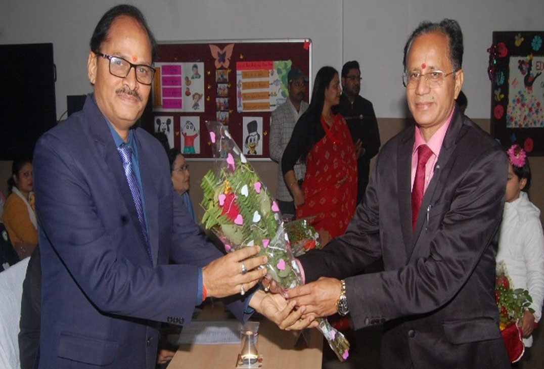 Our Principal Sir honoured Mr. Mridul Kumar Singh, Principal KNICE, Lal Diggi by giving him a Bouquet |