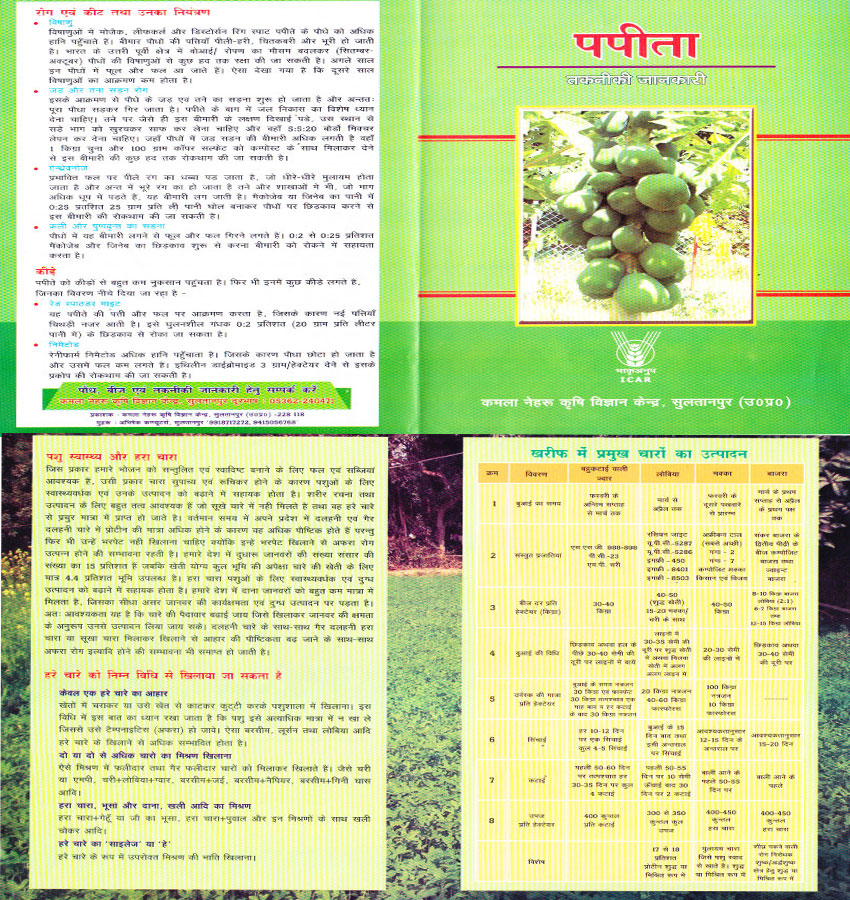We are giving special attention towards publication of leaflets, pamphlets, books and other extension literatures for dissemination of need based technology to the community of Sultanpur District. So far we have worked number of leaflets on various topics related to agriculture and allied subjects. KVK, Sultanpur is also publishing books and articlas which is distributed free of cost to various Departments & Allied Sectors.