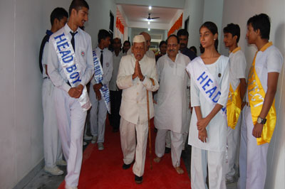Given honour to Chief Guest Mr. Raj Narayan Tiwari (Shaheed Diwakar Tiwari’s father, former Deputy Director, Agriculture) & Guest of honour Mr. Kamla Prasad Pandey by the Principal |